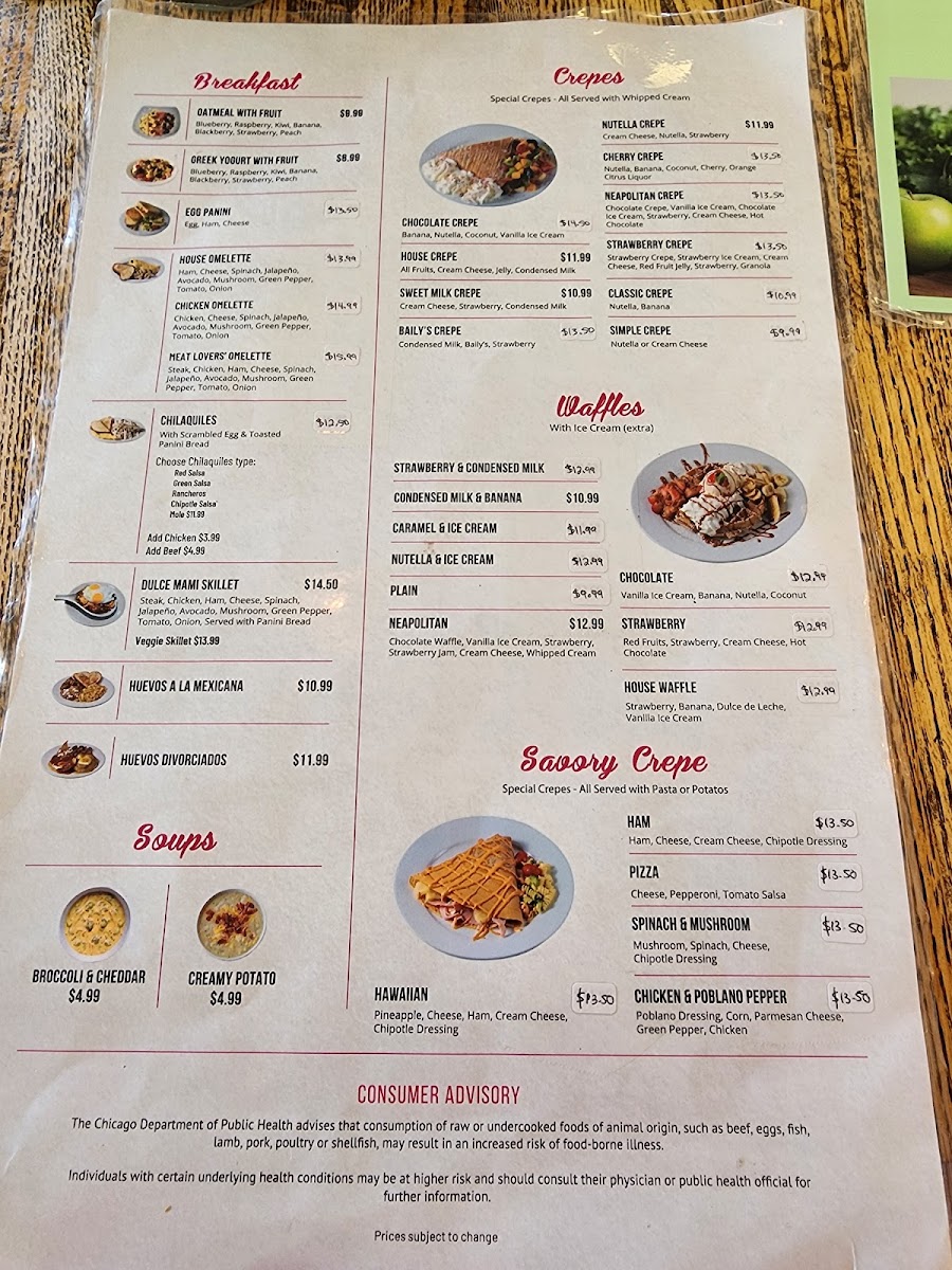 Welcome to Dulce Mami Café - Cicero, a delightful culinary gem nestled in Cicero, Illinois. Known for its vibrant atmosphere and flavorful offerings, this café promises an unforgettable dining experience. The menu is a celebration of creativity, featuring enticing combos like the Omelette De Huevo Y Pancake Loco and the Dulce Mami Combo, which combines waffles with a delightful array of fruits, jelly, and proteins for just $17.99.